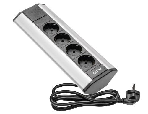 GTV Colt – Priză pentru mobilier, cu 4 prize Schuko, finisaj aluminiu