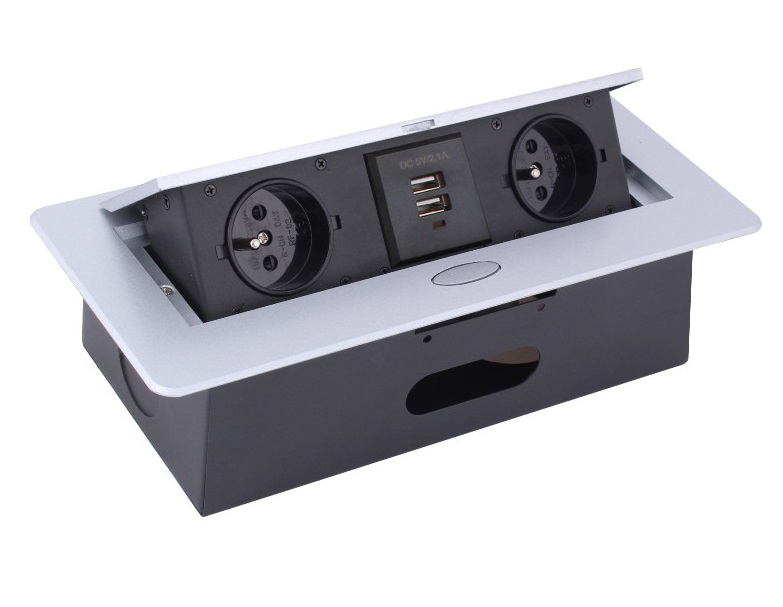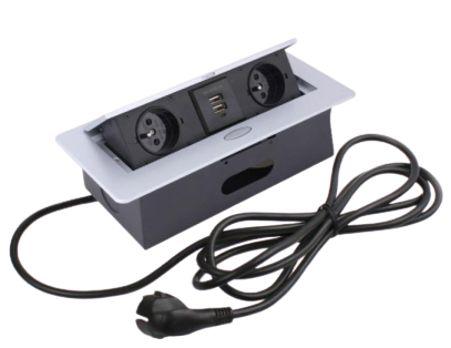 Kombibox oferă alimentare electrică dublă, încărcare USB și încărcător integrat într-un singur modul robust. Designul încorporabil menține blatul ordonat și funcțional, iar finisajul aluminiu adaugă un aspect modern și durabil. Soluția este ideală pentru reducerea cablurilor și optimizarea spațiului de lucru.