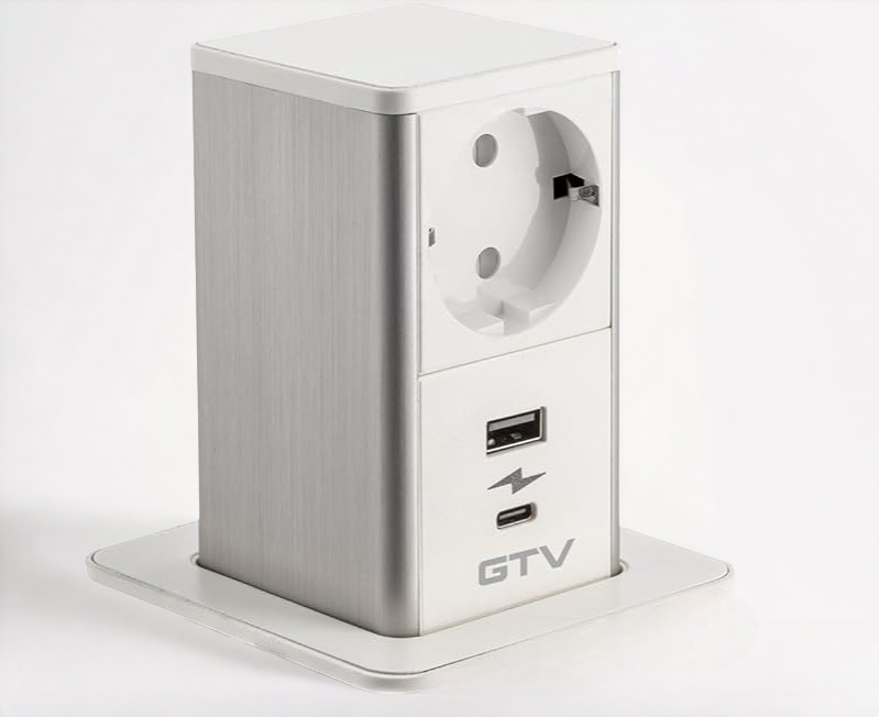 Construcția din aluminiu și plastic rezistent oferă stabilitate și durabilitate, iar finisajul alb se integrează perfect în mobilier luminos, bucătării minimaliste și spații contemporane. Designul încorporabil optimizează spațiul, reduce cablurile vizibile și elimină necesitatea prelungitoarelor.