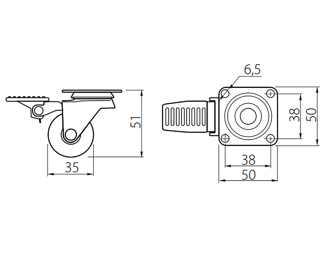 Roata din silicon cu frână, cu diametrul de 35 mm, este destinată mobilierului de dimensiuni mici, unde spațiul de montaj este limitat, dar este necesară mobilitate controlată. Datorită funcției de rotire 360°, roata permite manevrarea precisă a mobilierului chiar și în zone înguste.