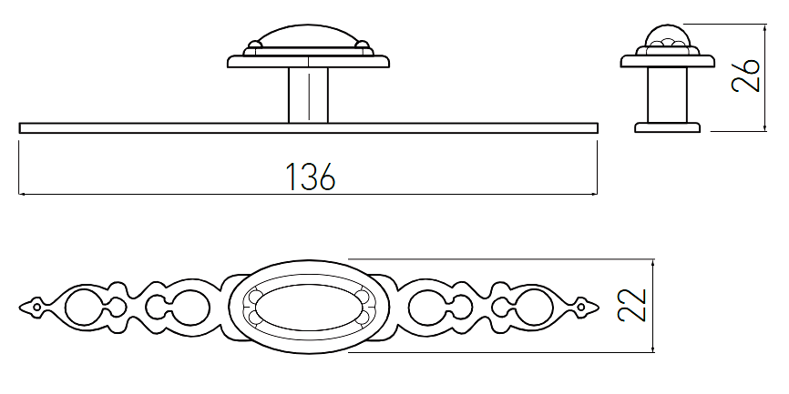 GTV WP-1146 - Buton pentru mobila, finisaj alama antichizata GT, L:136 mm