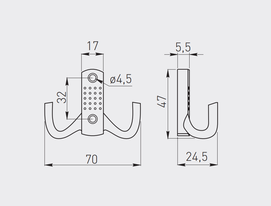 Se montează pe perete din PAL, MDF, lemn masiv sau zid. Potrivită pentru haine ușoare, genți, chei sau accesorii.