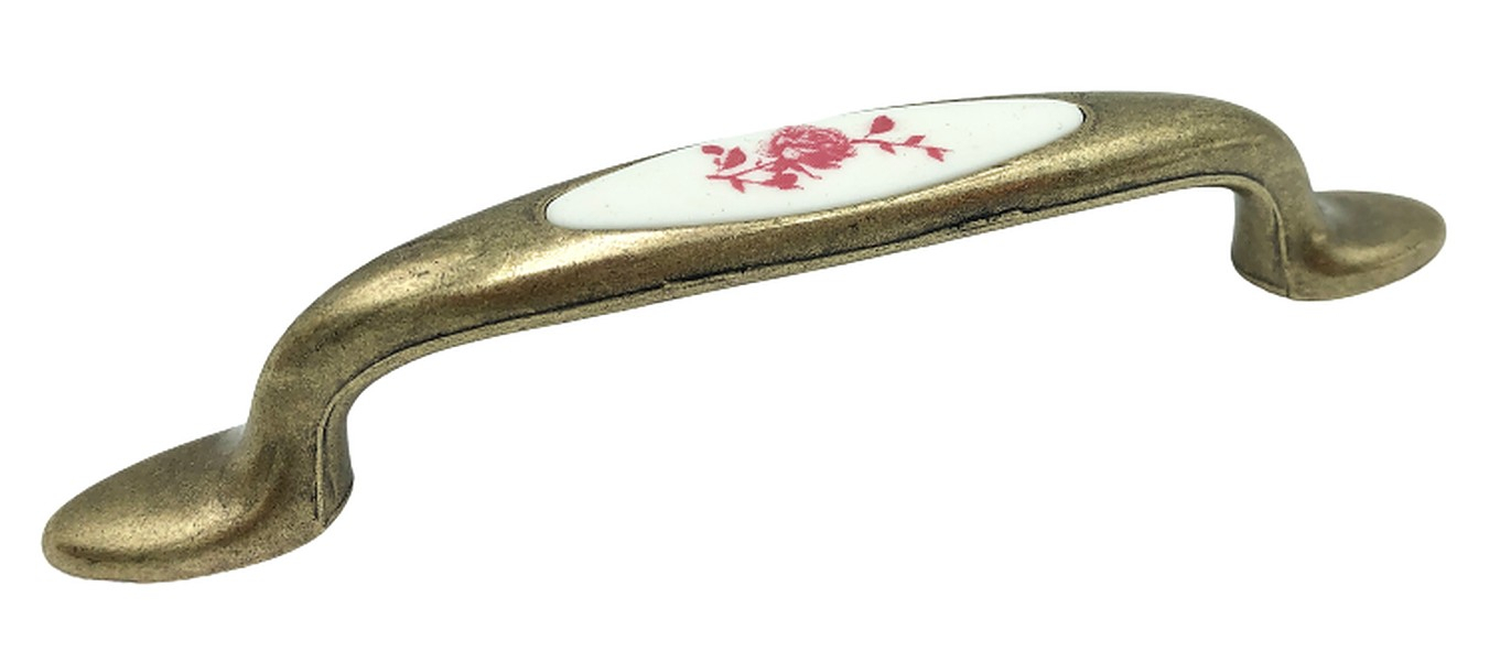 Malle Maner pentru mobila cu insertie rasina floare rosie, finisaj bronz oxidat, 96 mm